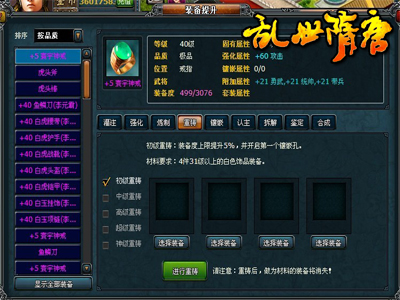 强化:玩家能够通过消耗相应的强化宝石提升装备的强化等级。