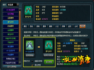 顾名思义,强化转移即将原装备的强化等级转移到另一件同部位装备上。