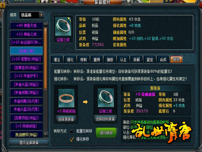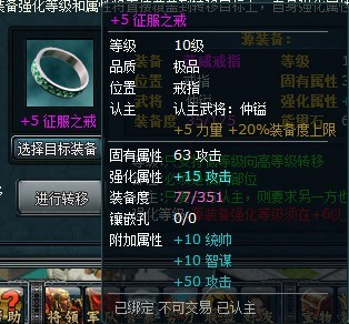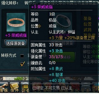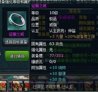 将5级的荣威戒指强化等级转移到10级的征服之戒上。